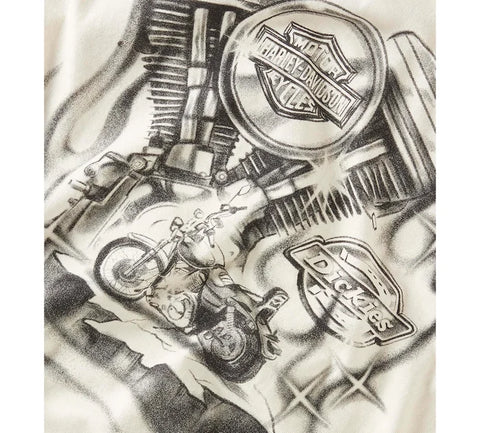 Harley X Dickies shirt made of jersey and robust and breathable cotton, in washed style to give it a variation of color and unique shading. His exclusive graphics give a nod to Harley-Davidson.
