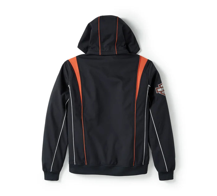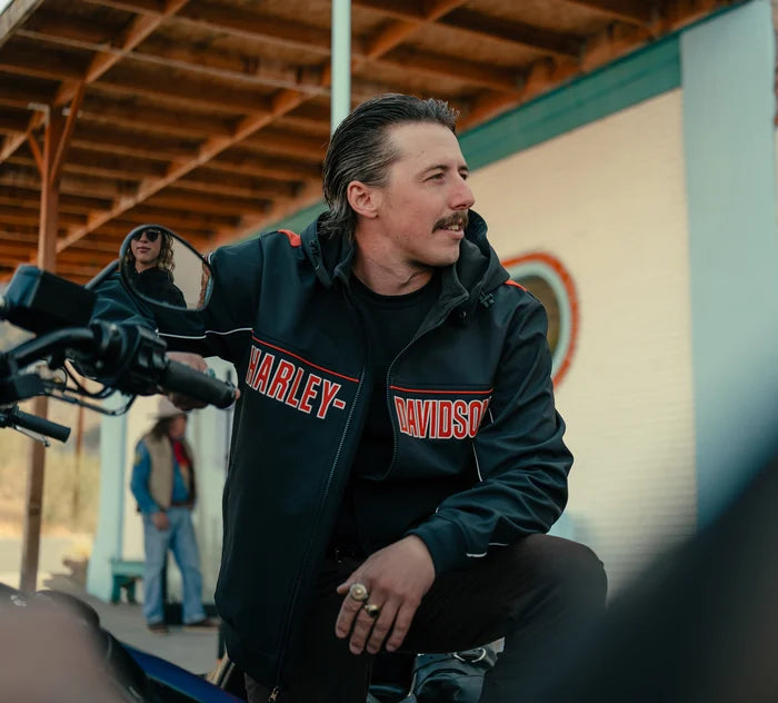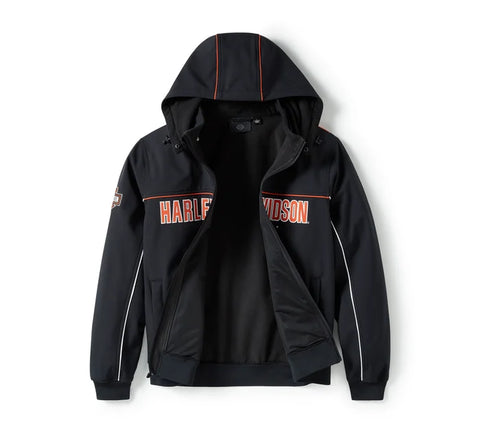 Rimani comodo e fedele allo stile Harley con la nostra nuovissima giacca antivento soft-shell Idyll. Realizzato con materiali idrorepellenti e antivento, è una scelta ideale nelle giornate di maltempo. Dispone inoltre di tasche chiuse con zip per fissare gli oggetti essenziali, di un cappuccio rimovibile con cordino e di action back elasticizzata a costine. Rifinita con bordi a contrasto e grafica ricamata, per un look classico e moderno. Ordinala subito finché è disponibile.