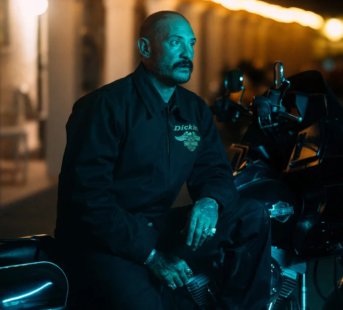 Un modello Dickies® iconico rivisitato in puro stile Harley-Davidson®. Realizzata in tessuto twill misto pesante e resistente, la giacca Eisenhower è foderata per offrire maggior tepore. La giacca è dotata di retro a soffietto, linguette regolabili alla vita, maniche pre-curvate e colletto con automatici che rimane in posizione sotto l'abbigliamento tecnico. Il capo è rifinito con una fodera a contrasto e con bottoni e dettagli co-brandizzati, per esaltarne lo stile. Questa giacca da uomo sfoggia una grafica distintiva su entrambi i lati, celebrando uno stile senza tempo e lo spirito di chi sa lavorare duro. Il capo fa parte della collaborazione tra Dickies® e H-D®, un'idea che unisce abbigliamento da lavoro di alta qualità a una cultura motociclistica da leggenda.